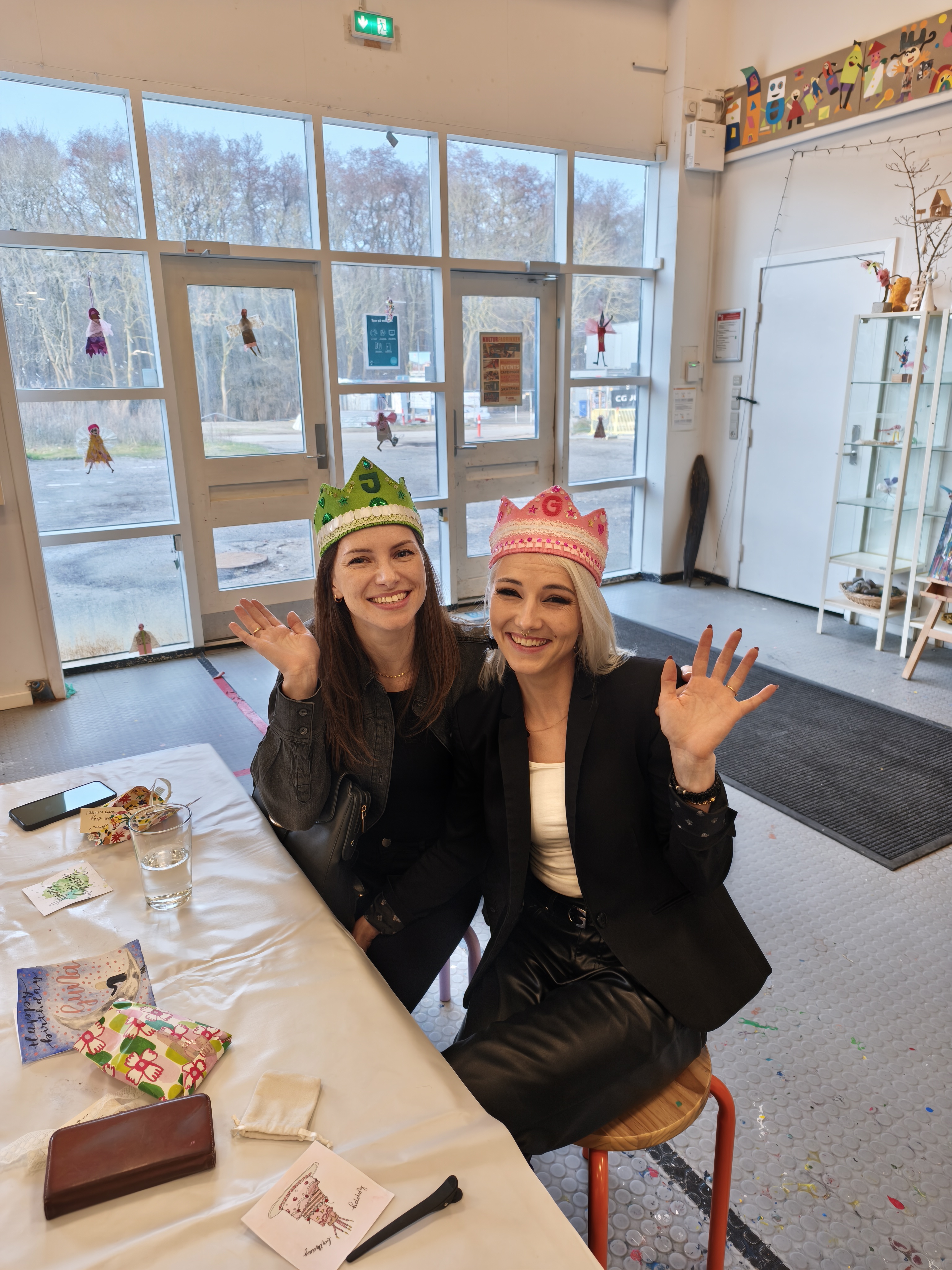 Then on Saturday I already sat in the train early in the morning, because I drove to the airport of Copenhagen to pick up my friend Camille that would visit me for a whole week🥳 We spent the first weekend in Copenhagen and had an amazing time catching up in cafés & strolling around in the city. Then on Monday she came with me to Kulturfabrikken to see the café and I showed her the open workshop. It was the 23rd of March, which means: it was Guna’s birthday wohoooo🎉❤️!!!!! She had her twin sister Jana visiting at that moment, so they came together to the open workshop, which was wonderful (and we had a participant record: there were 19 in total!) Camille unfortunately began to feel sick, so she went home to our apartment to get some sleep. After the open workshop Lily and I went to Guna’s apartment to celebrate her and Jana a bit more and it was a very cozy evening🥰 Luckily Camille felt better the day after and the rest of the week went very nice: I showed her Nykøbing, we had several movie nights, went to the gym, made tote bags together at designstuen and I ran my first ever 10k with Camille as my best motivator❤️🔥❤️🔥!! We spent the second Saturday again in Copenhagen, visited the happiness museum and enjoyed the city a little more. Sunday meant: back to the airport and goodbye😢